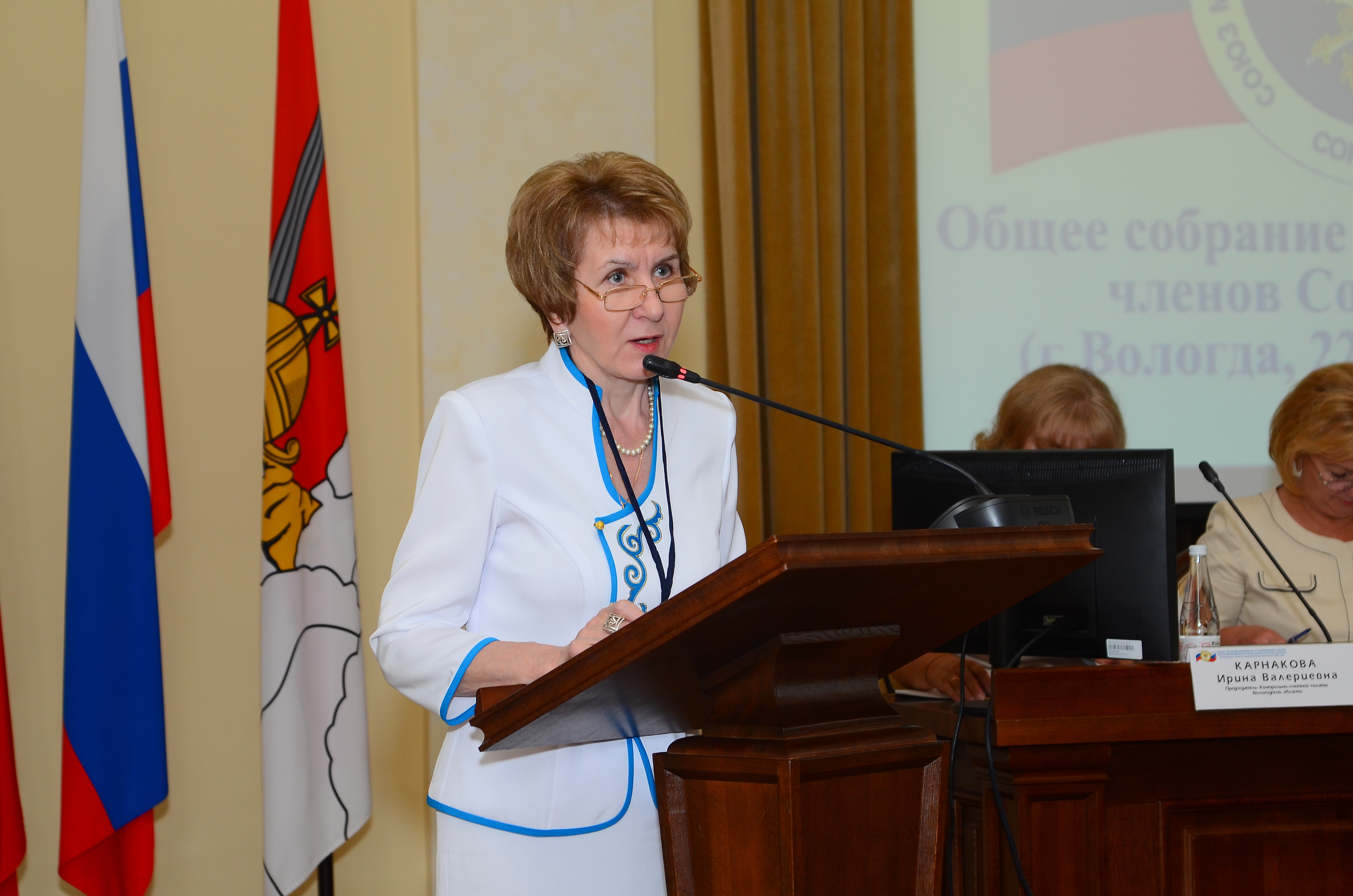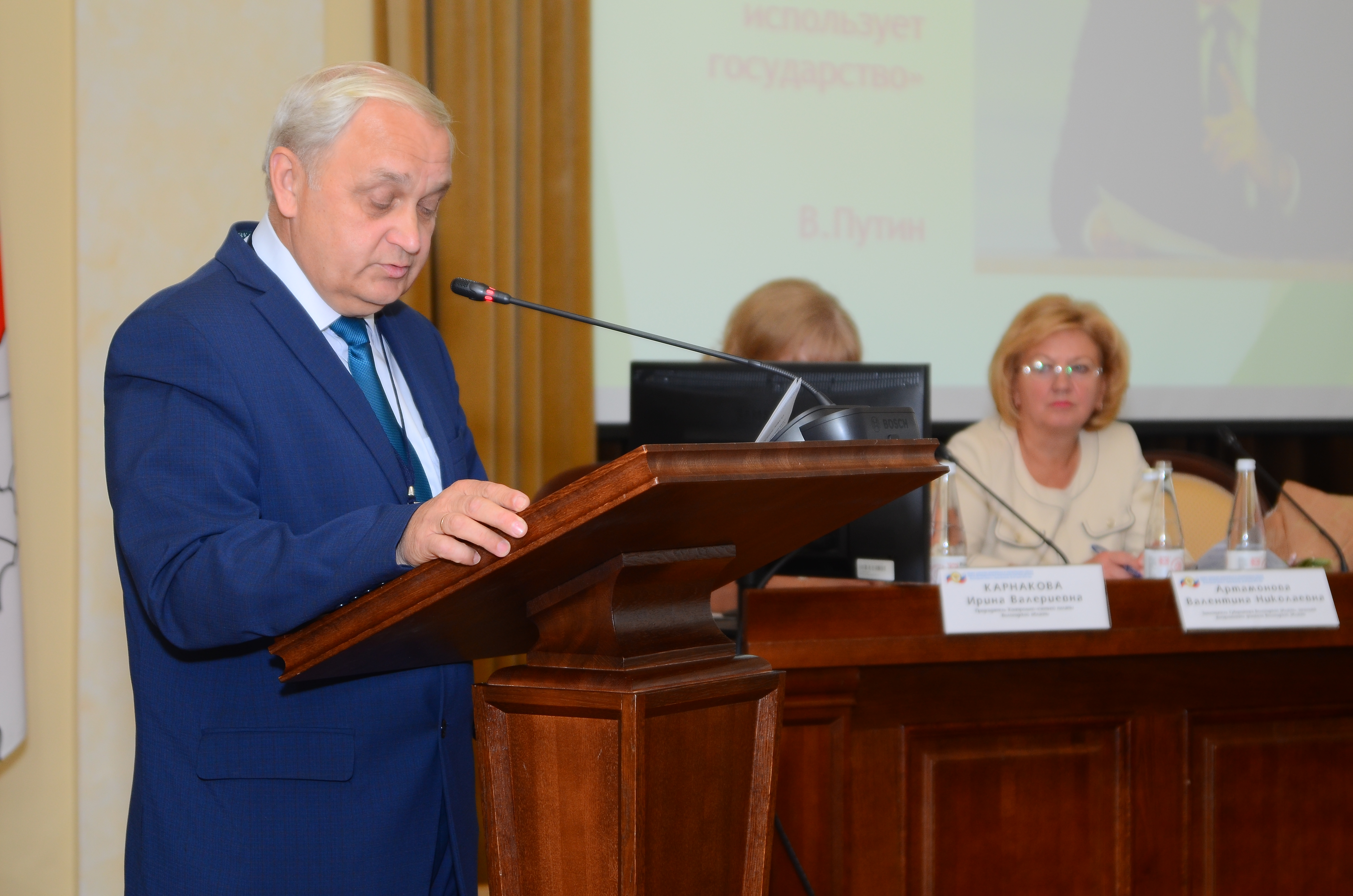 С приветственным словом к делегатам и участникам Конференции обратились Глава города Вологды Е.Б. Шулепов, заместитель Губернатора области, полномочный представитель Губернатора области и Правительства области в Законодательном Собрании области Э.Н. Зайнак, заместитель Губернатора области, начальник Департамента финансов области В.Н. Артамонова, и Председатель Контрольно-счётной палаты Вологодской области И.В. Карнакова.