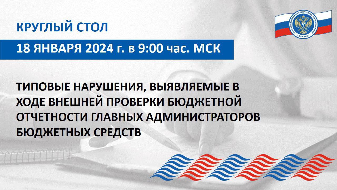 Круглый стол Союза муниципальных контрольно-счетных органов «Типовые нарушения, выявляемые в ходе внешней проверки бюджетной отчетности главных администраторов бюджетных средств» состоялся 18 января 2024 года в режиме видеоконференцсвязи.