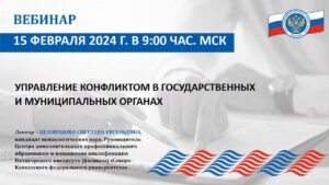 Вебинар на тему «Управление конфликтом в государственных и муниципальных органах» состоялся 15 февраля 2024 года в режиме видеоконференцсвязи.