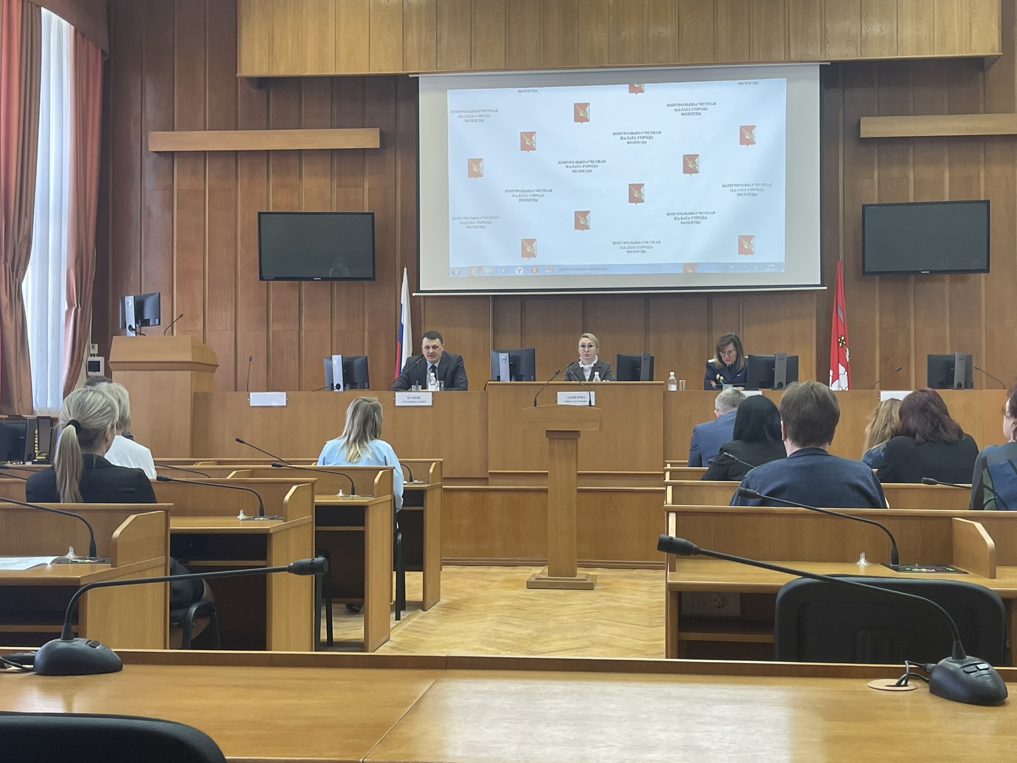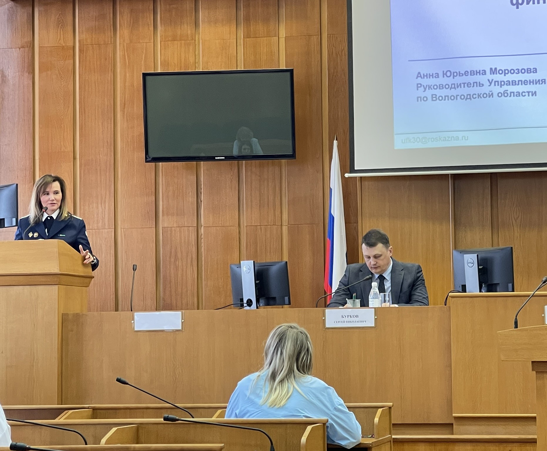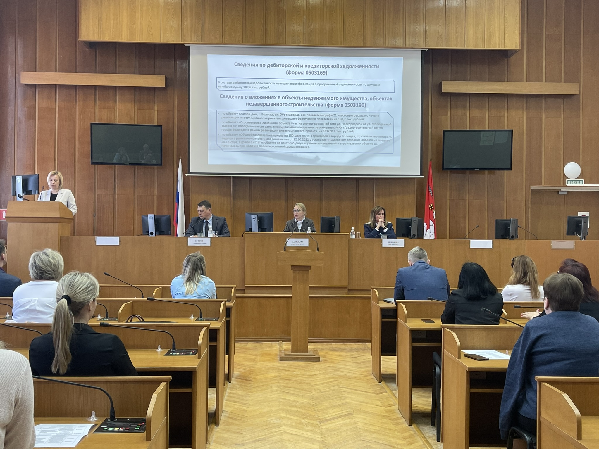 На совещании с докладами выступили Данилова Ирина Валерьевна, Председатель Контрольно-счетной палаты города Вологды, Морозова Анна Юрьевна, руководитель Управления Федерального казначейства по Вологодской области, Михайлова Елена Вячеславовна, аудитор Контрольно-счетной палаты города Вологды, Тигина Светлана Евгеньевна, заместитель начальника отдела финансирования расходов и контроля Департамента финансов – главный бухгалтер Администрации города Вологды, Ермоленко Александра Юрьевна, консультант отдела совершенствования управленческих процессов Администрации города Вологды, Косован Галина Валериевна, заместитель руководителя МКУ «Централизованная бухгалтерия, обслуживающая муниципальные учреждения города Вологды».