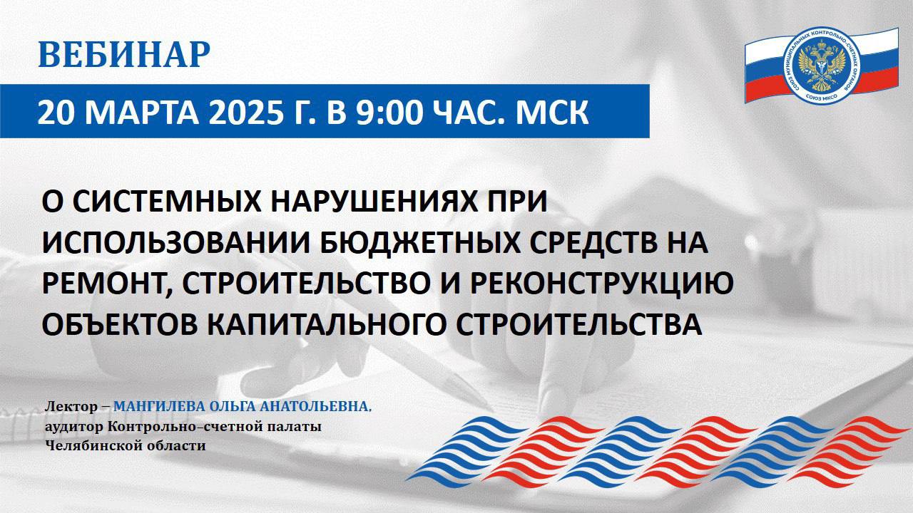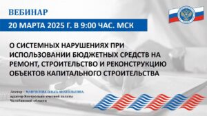 20 марта 2025 года сотрудники Контрольно-счетной палаты города Вологды приняли участие в вебинаре внешнего эксперта на тему: «О системных нарушениях при использовании бюджетных средств на ремонт, строительство и реконструкцию объектов капитального строительства», состоявшегося в рамках обучающих мероприятий Союза муниципальных контрольно-счетных органов.