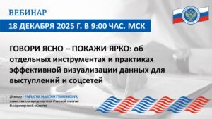 Сотрудники Контрольно-счетной палаты города Вологды 18 декабря 2025 года приняли участие в вебинаре на тему: «Говори ясно – покажи ярко: об отдельных инструментах и практиках эффективной визуализации данных для выступлений и соцсетей».